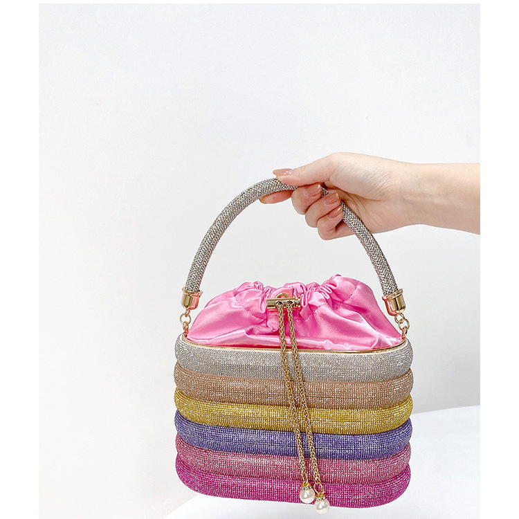 Colour Crystal Evening Clutch Bags Women Luxury Designer Pearl Handle Rhinestone Metal Cage Purses And Handbags Wedding Party