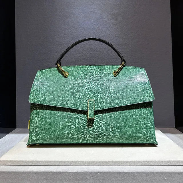 Pearl Fish Leather Pattern Women Handbags Shell Bag Cowhide Leather Lady Shoulder Messenger Bag Large Capacity Fashion Bags